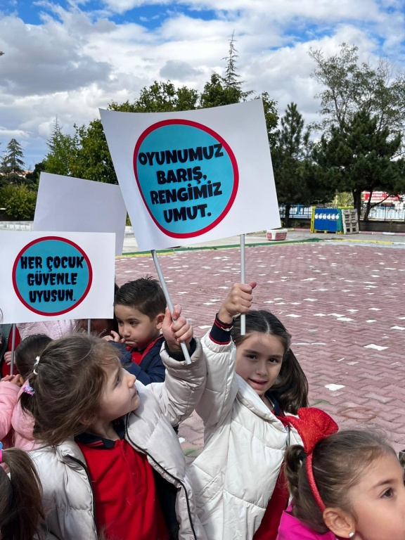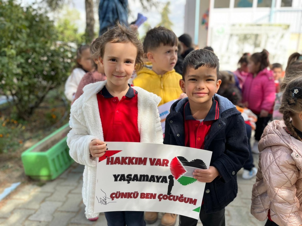 Okulumuzda, çocuklarda empati duygusunu geliştirmek ve evrensel insan haklarına farkındalık kazandırmak amacıyla “Filistin’deki Çocuklar İçin Duyarlılık Etkinliği” gerçekleştirildi. Etkinlik kapsamında öğrenciler, “Benim de yaşamaya hakkım var!” sloganıyla hazırladıkları çalışmalarla barışa, kardeşliğe ve dayanışmaya dikkat çekti.